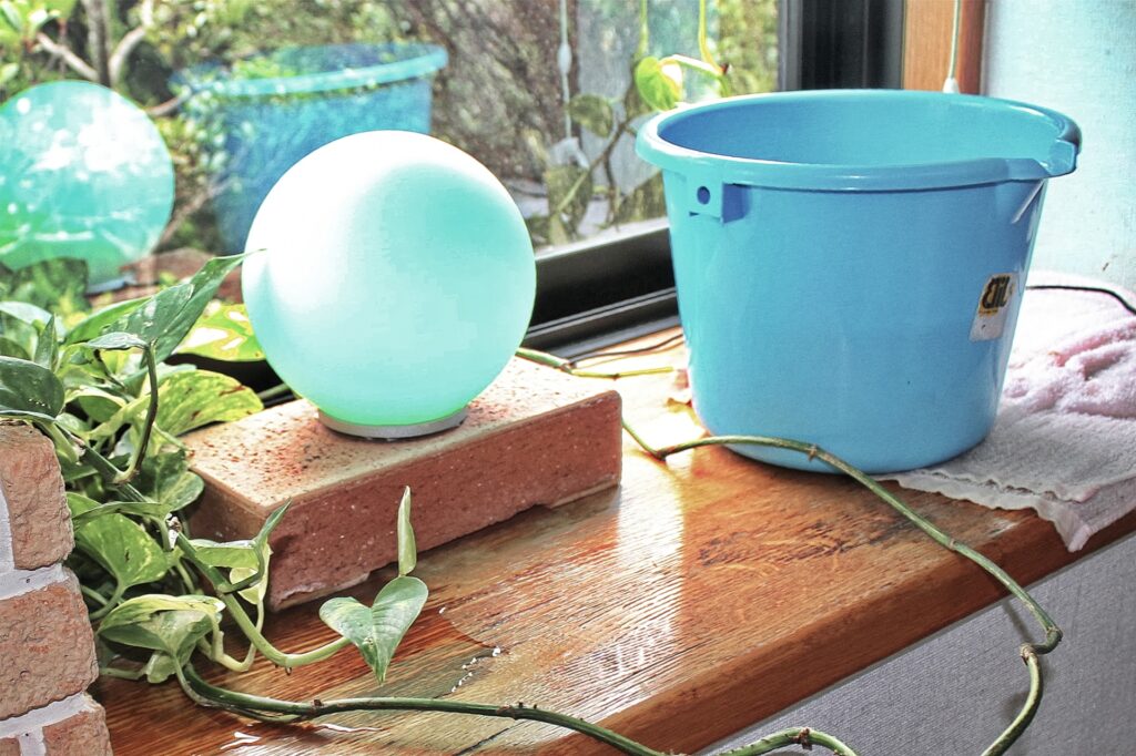 雨水が垂れている場所にバケツを設置する